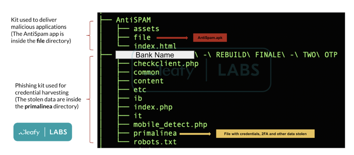 The attack chain usually starts with a fake SMS containing a link to a website. The SMS seems to come from the bank (the so-called spoofing scam), and it tries to convince the victim to download an anti-spam app, with the promise to be contacted soon by a bank operator.