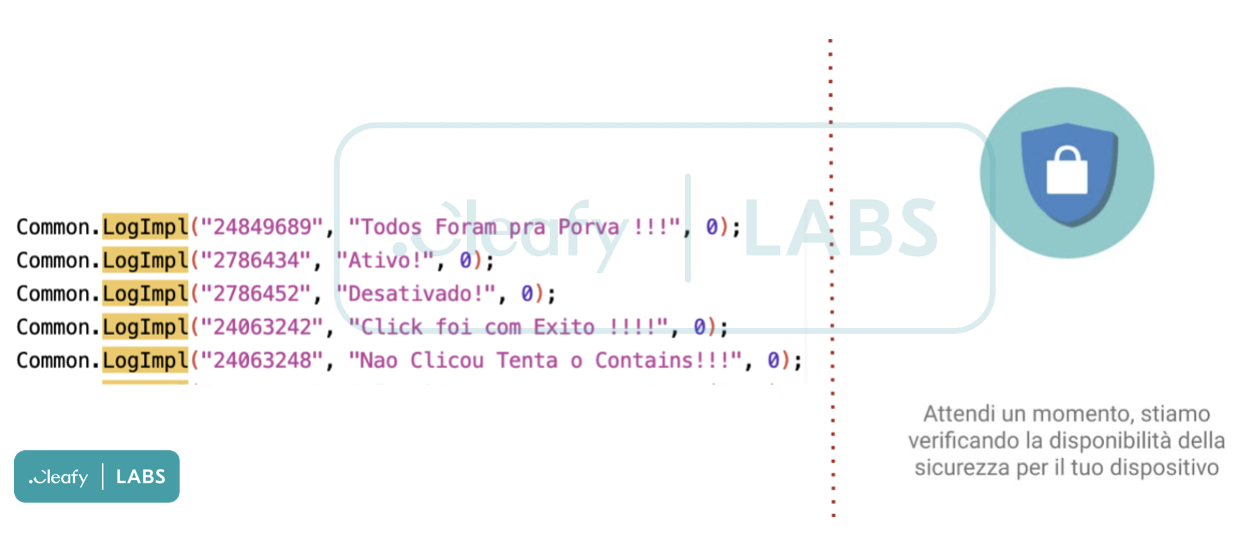 Several Portuguese/Brazilian logs embedded in the malicious app are shown to the victim in Italian. Our assumption is that, perhaps, the group responsible for maintaining the BRATA codebase, probably located in the LATAM area, is reselling this malware to other local groups. As a result, this threat is gradually expanding in several European countries.